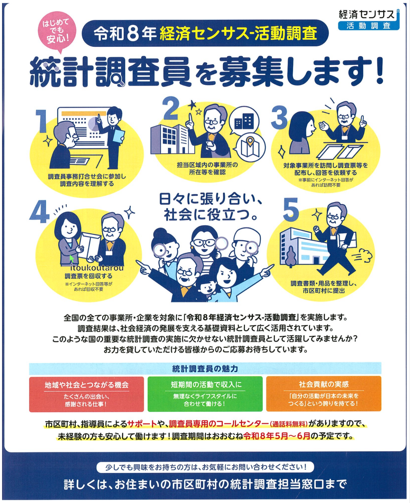 【募集】令和8年 経済センサス‐活動調査 調査員を募集します